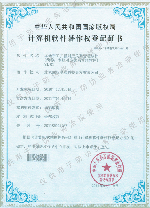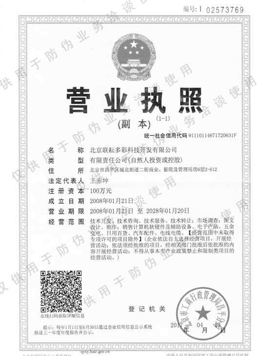 北京聯(lián)耘多彩科技開發(fā)有限公司成立于2008年如今已有多年的行業(yè)經(jīng)驗,我司的榮譽(yù)證書。